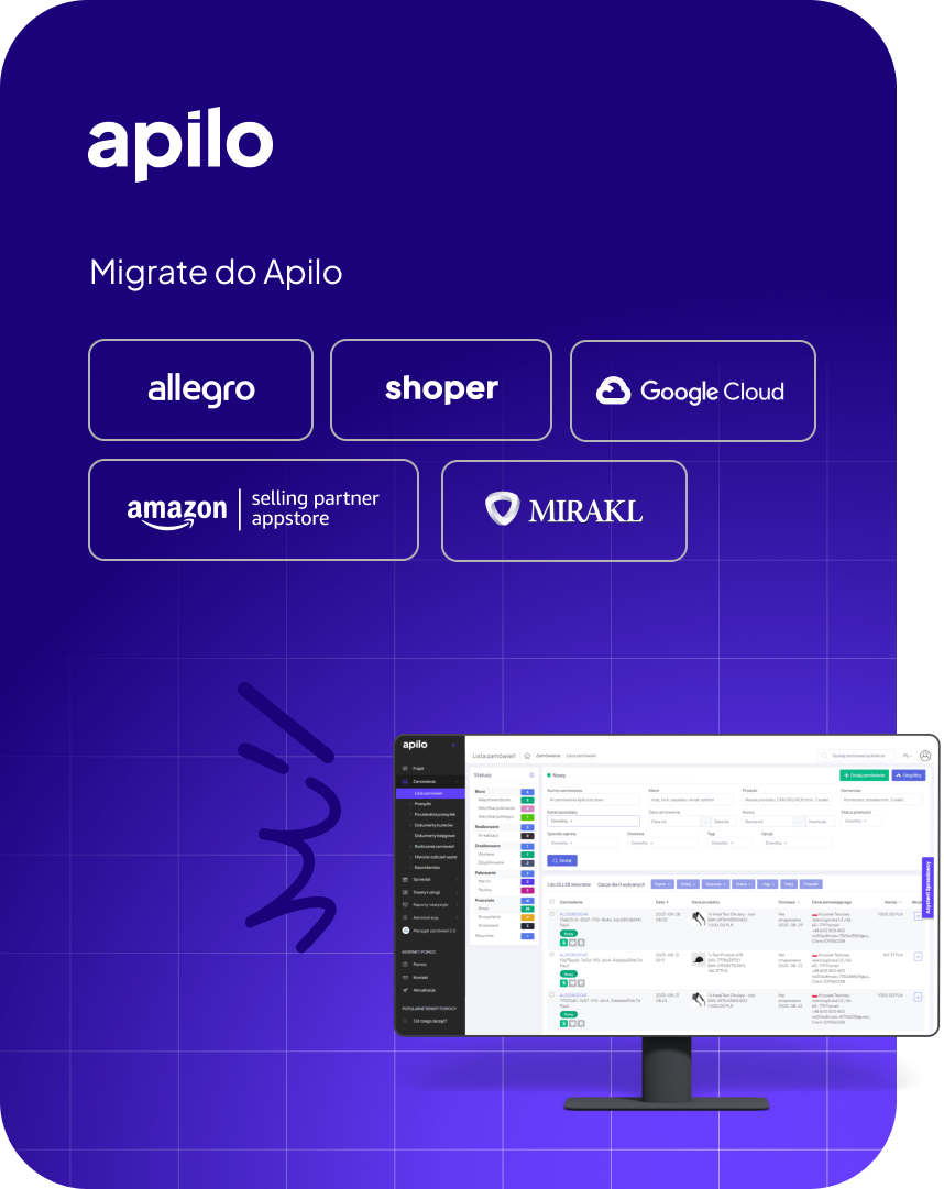 We will migrate your e-commerce from any sales management tool to Apilo. Choose Apilo – grow your business with a system that saves your time and reduces order management costs.