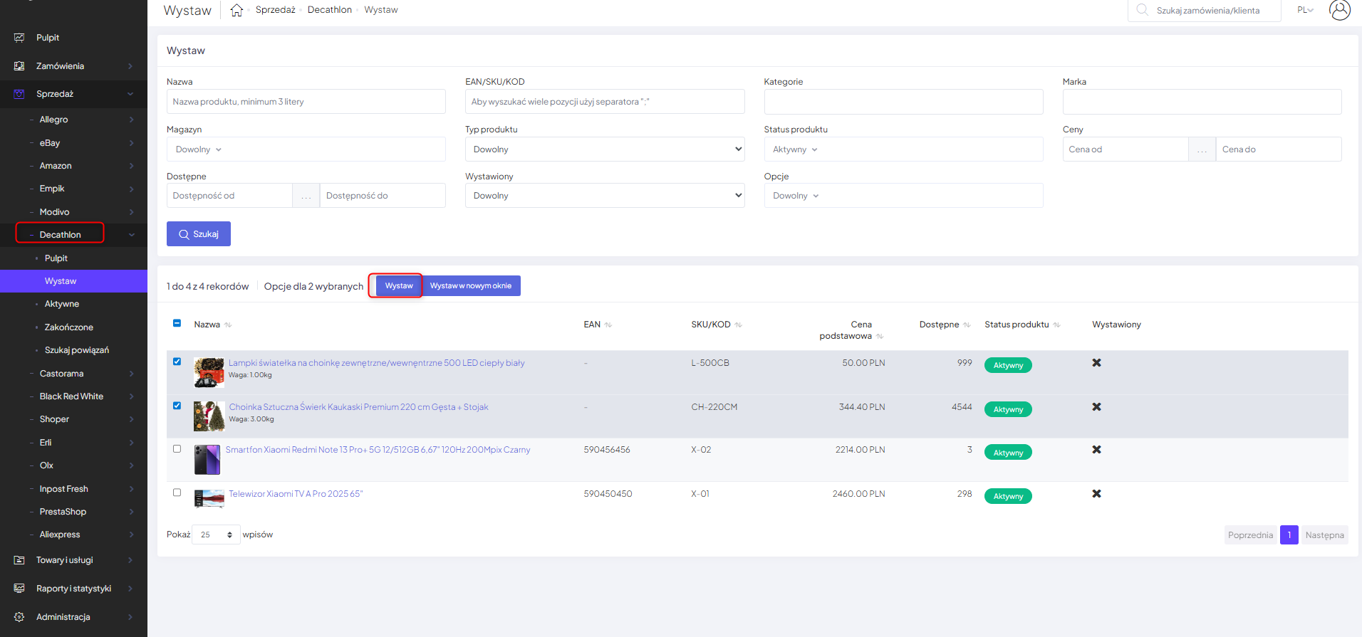 - Przejdź do zakładki Sprzedaż → Decathlon → Wystaw.