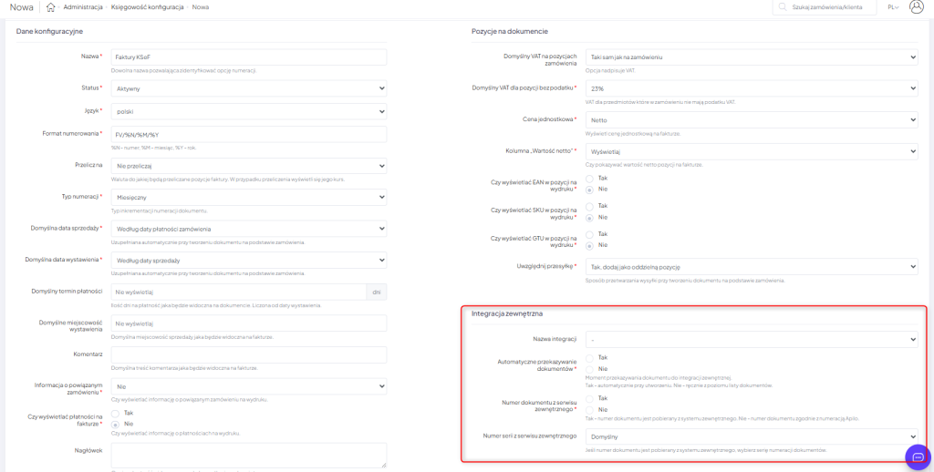 3. W integracji zewnętrznej wybierz KSeF: