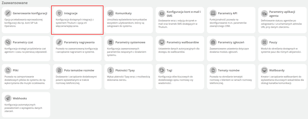 - Z zakładki Administracja wybierz Zaawansowane → Integracje.