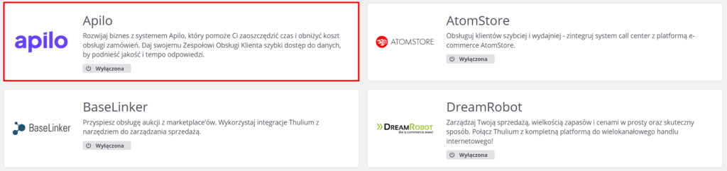 - W przypadku samego zapisania należy następnie uruchomić integrację Apilo:
